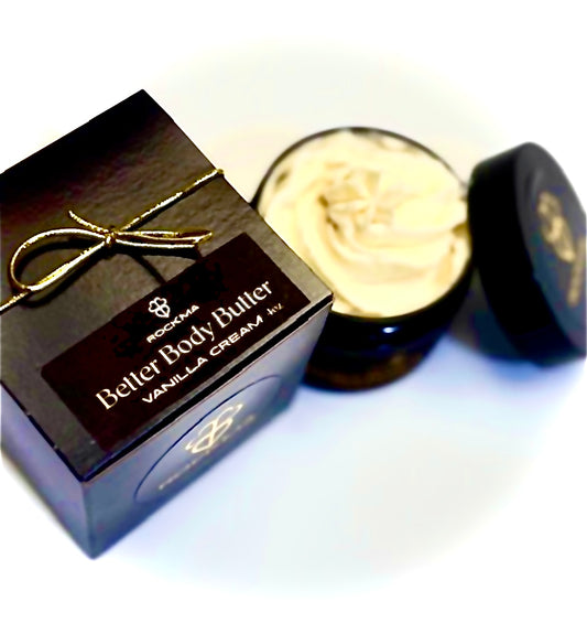 Say goodbye to ashy elbows and thirsty thighs. Our luxurious moisturizing body butter is handmade in the USA in small batches using nourishing organic ingredients. No sketchy chemicals allowed. RockMa’s Better Body Butter smells absolutely amazing and feels even better. Bonus: it comes in a fancy box with an inspirational note- because why shouldn't your skincare cheer you on.